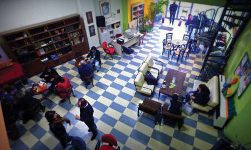 Λειτουργεί όλη την ημέρα, από τις 10 το πρωί ως τις 8 το βράδυ και αποτελεί σημείο συνάντησης των μελών.